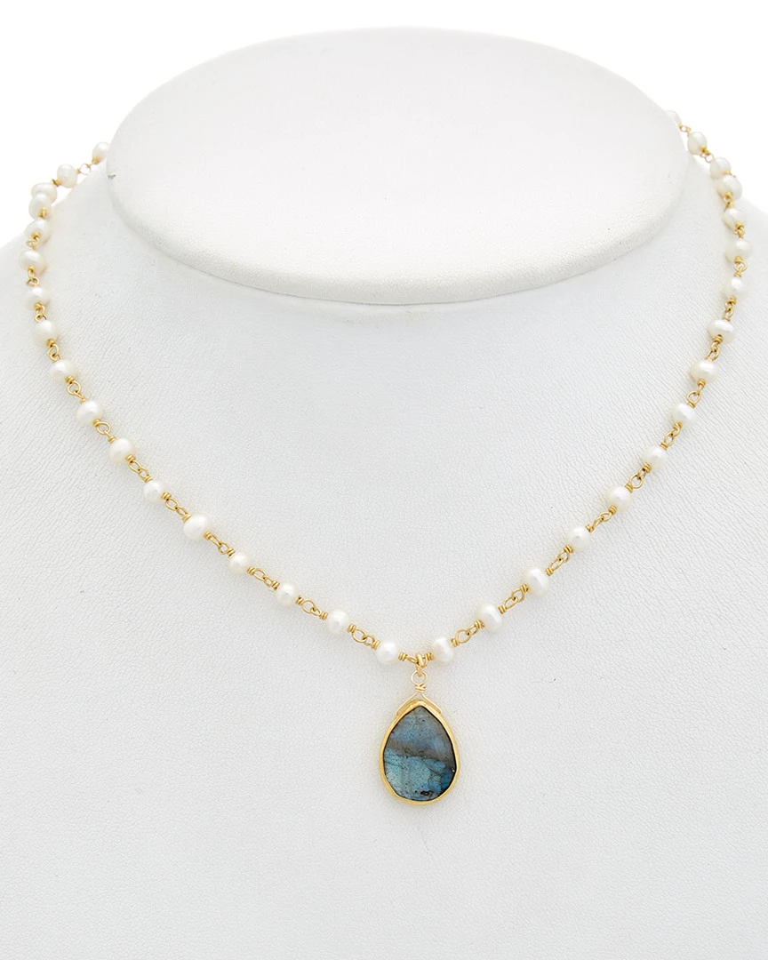 Outlet ๐ Rachel Reinhardt 14K Over Silver Labradorite & 3-4mm Pearl Necklace ๐ฉ Women Necklaces ๐
