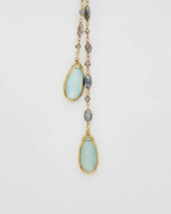 Brand new ๐ Rachel Reinhardt 14K Over Silver Labradorite & Chalcedony 44in Lariat Necklace ๐ฉ Women Necklaces โ