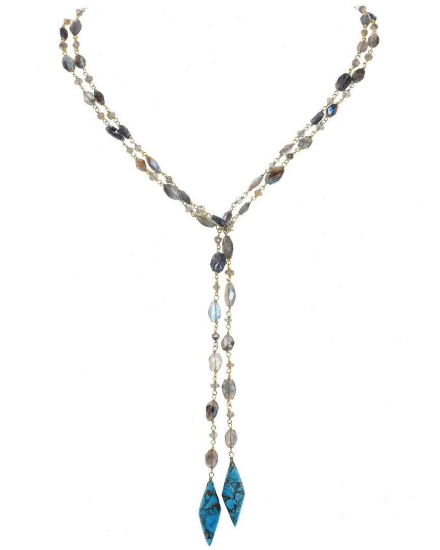 Brand new ๐ฅ Rachel Reinhardt 14K Over Silver Labradorite & Turquoise Lariat Necklace ๐ฉ Women Necklaces ๐งจ