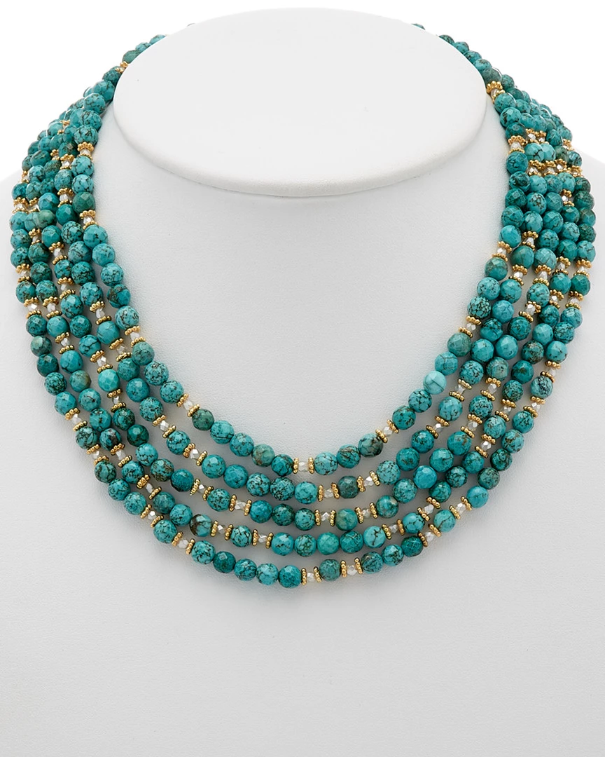 - Faceted round bead-set turquoise gemstones measure 5mm
