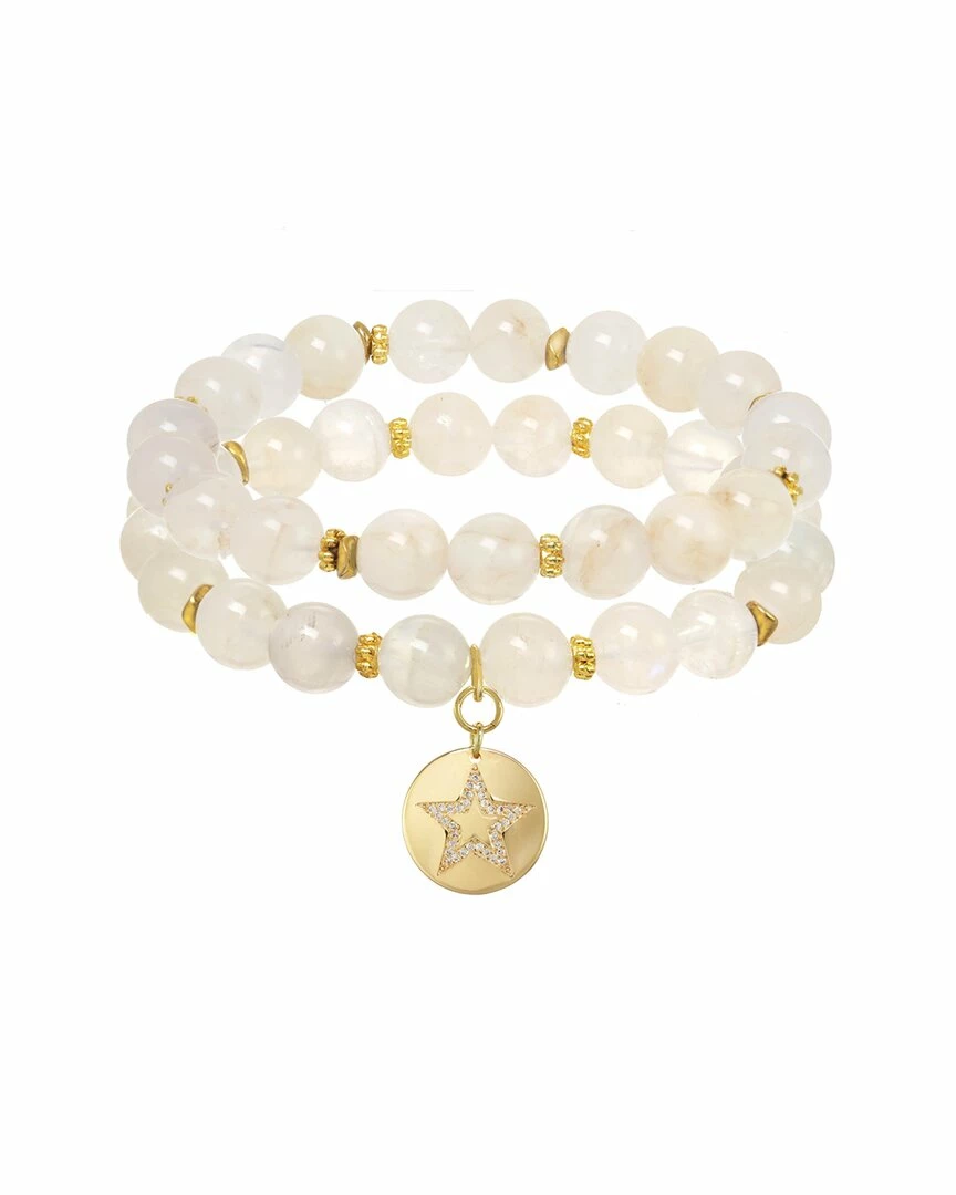 Budget ๐งจ Rachel Reinhardt Baby’s Breath 14K Over Silver Moonstone CZ Star Medallion Stretch Bracelet ๐ฉ Women Bracelets ๐ฅ