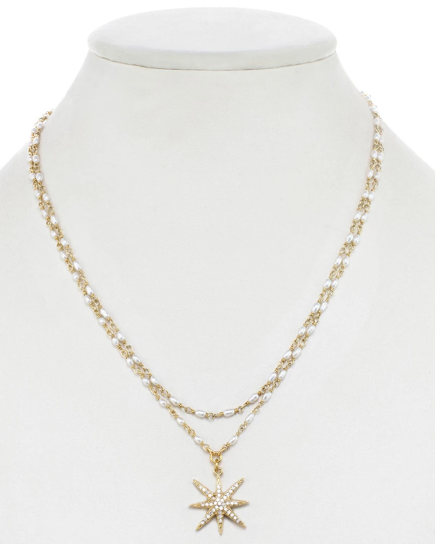 Wholesale ๐ฅ Rachel Reinhardt Star 14K Over Silver 3mm Pearl & CZ Necklace ๐ฉ Women Necklaces ๐ฏ