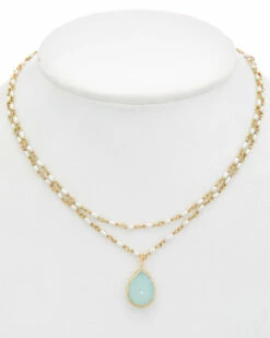 Promo 👍 Rachel Reinhardt 14K Over Silver Chalcedony & 3-4mm Pearl Necklace 👩 Women Necklaces ⭐